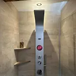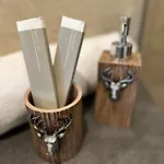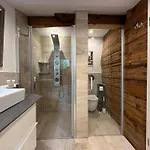 Badrumsfaciliteterna i Chalet-Simmi inkluderar också en duschkabin och en separat toalett. Badrockar, badlakan och handdukar finns också bland badrumsfaciliteterna.